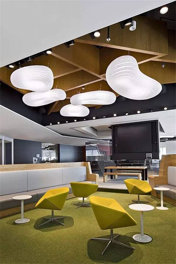 ▼辦公室大面積使用顏色來區(qū)分辦公環(huán)境,一方面可以帶來心理上的暗示,一定程度上優(yōu)化人們的工作狀況,活躍辦公室氣氛,讓人感到輕松愉悅;另一方面也可以很好的劃分不同空間的功能,讓人一目了然。